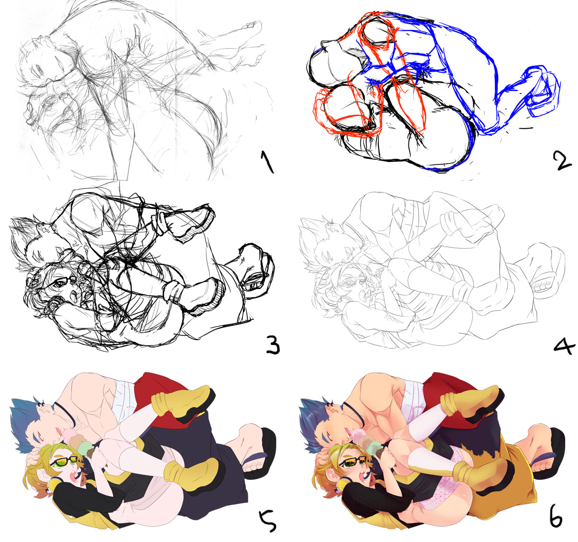 5/線画整理、下塗り。重なってる部分とか綺麗にして、線画の色を変えて下塗り。マスク変わりにしてるので全部別レイヤーです。