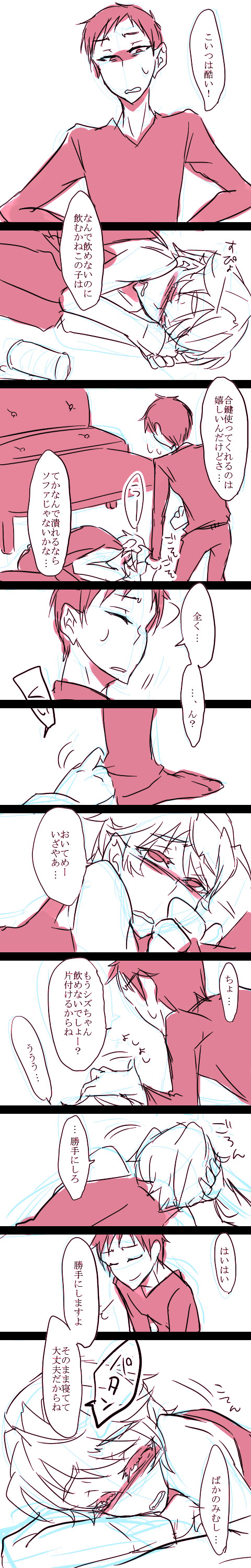 kinanekoさんへ、 35分以内に2人にRTされたらシズデレに気づかない臨也×酔っ払った静雄を描(書)きましょう。 http://shindanmaker.com/29820 #1342rt」ってことでRT頂けたのでそういうイザシズ描いてみました↓
