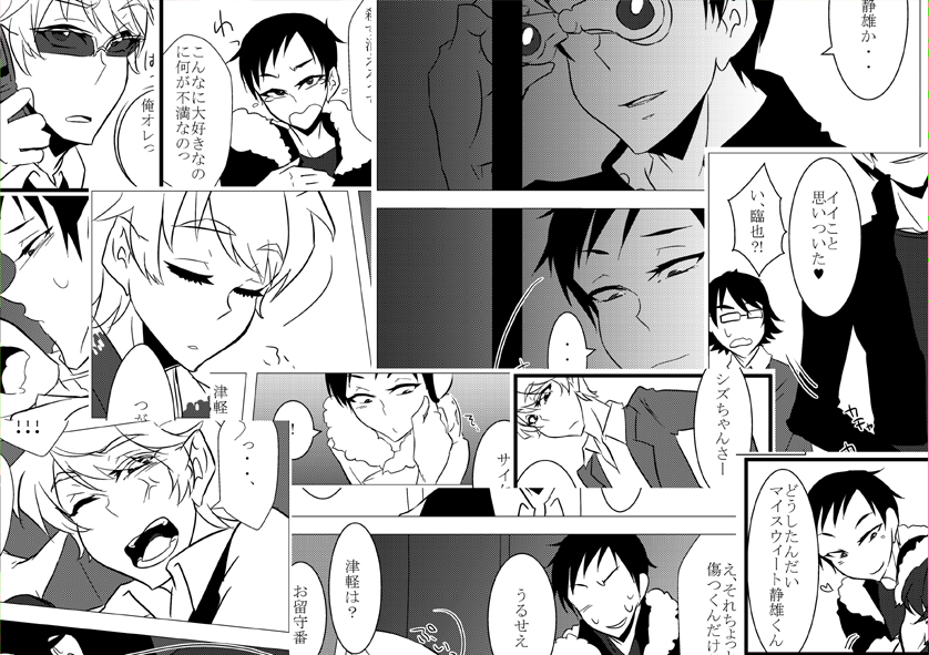 グッズにあった黒スーツの臨也様とオールバックの静雄がイチャついてるだけのペラ本