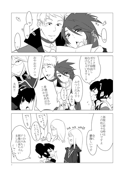 ガイルクとティアナタがイチャついてて、アニスがジェイドにセクハラされて、たまにイオアニもする、そんな感じの短いお話が4つ入ってます